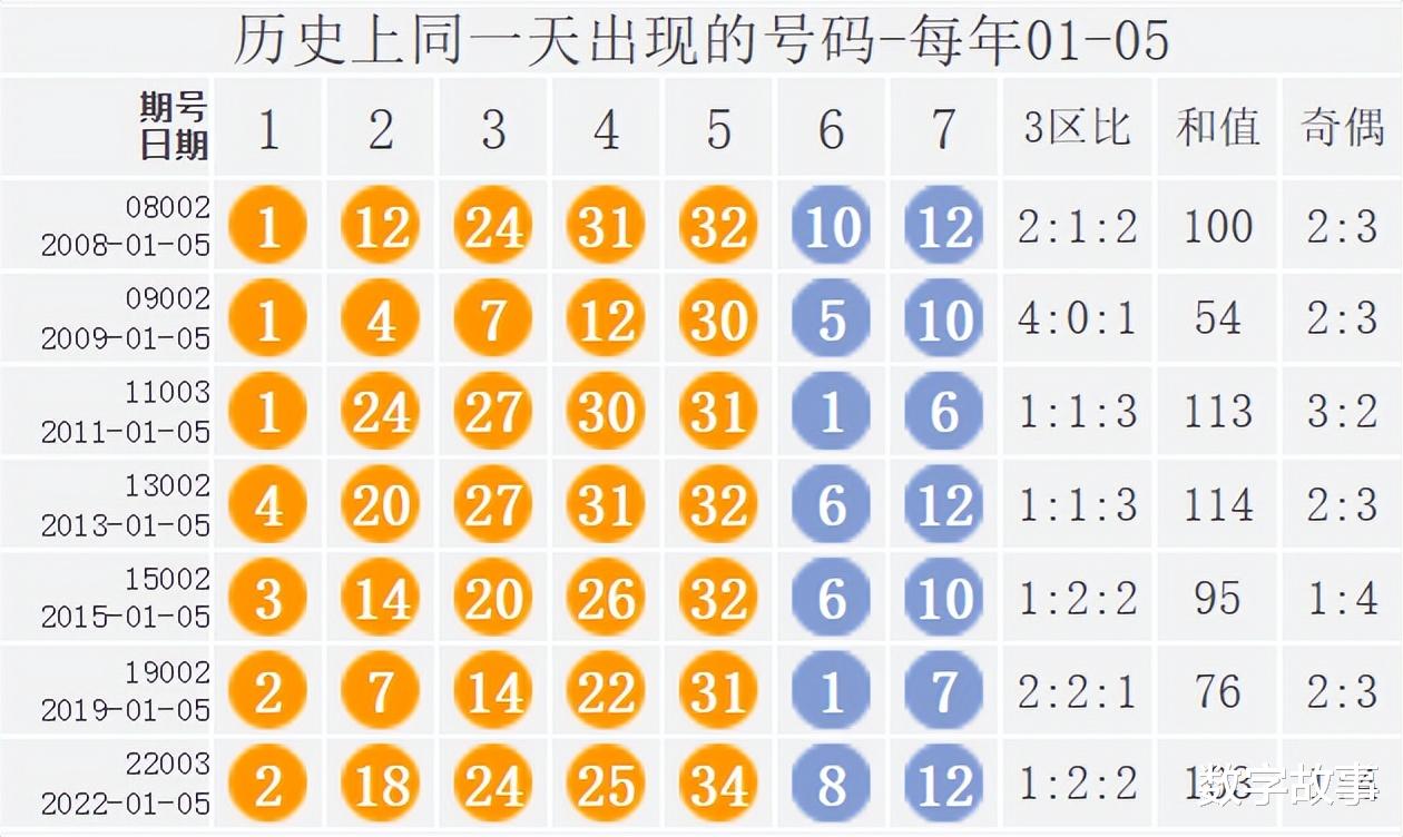 博弈心理,挑战概率: 看近期开奖号码,也可看历史数据统计!【大乐透26002期多角度冷热号】大乐透26002期四维走势图,前后区号统计及冷热号1) 历史同一天:01月05日 (共7期)