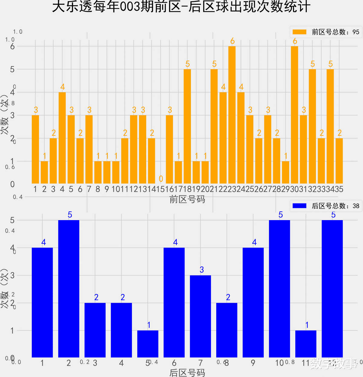 统计每年002期的样本数据: 95个前区号 38个后区号