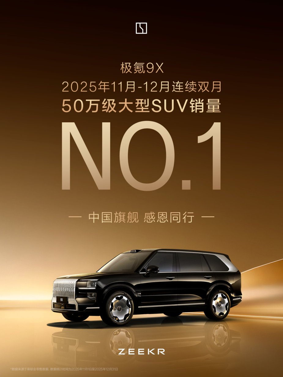 12月销量9482台!极氪9X稳坐50万以上大型SUV销冠宝座