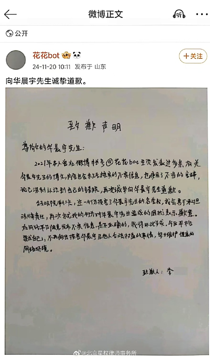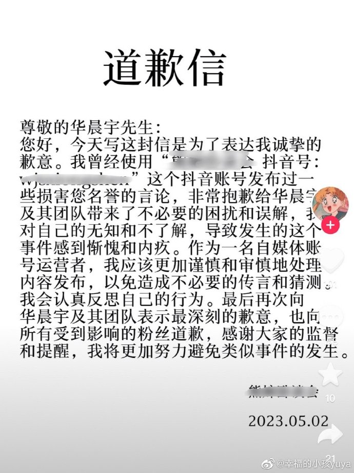 黑粉手写信致歉,承认了自己的错误行为。这不仅是对华晨宇先生个人的胜利,更是对网络暴力和恶意造谣行为的一次有力回击!👏👏👏