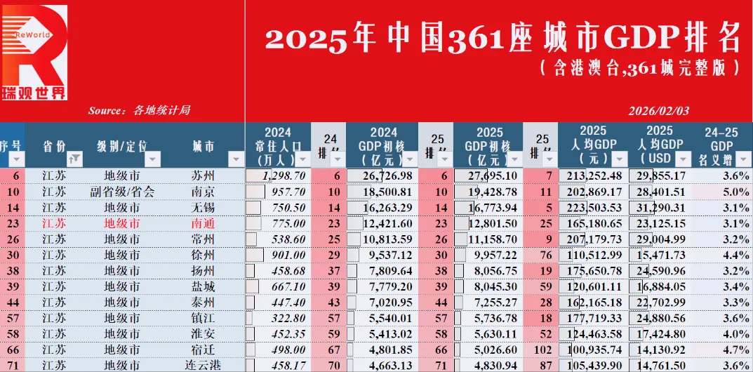 拿它跟同在江苏的苏州、无锡来对比一下就更加明显了,苏州有苏大(211),还陆陆续续引进了中国人大、南大、西交利物浦等一批名校资源,无锡有江南大学(211),那南通,在万亿GDP俱乐部当中,高等教育资源匮乏得几乎很难找到第二个了,制造业要升级、产业链得朝着高端方向发展,可是本地没有一所能够拿得出手的研究型大学来提供人才和技术支持。企业要是想要招高端研发人才,得跟上海苏州去争抢,不光成本高,留住人还更加艰难。