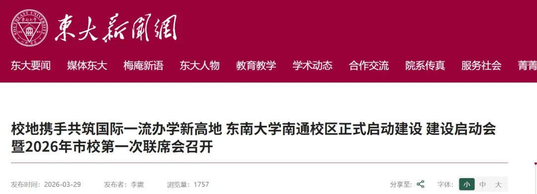 医疗方面也是这样,南通生物医药已经是千亿级的产业集群了,东大在生物医学工程上的积累正好能往里头填, 而且不是光说不做,先落地运作着东南大学南通海洋高等研究院,卓越工程师学院南通分院去年5月也挂了牌, 校区还没建好,合作什么脉络就已经展开了。