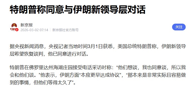 比如,在哈梅内伊殉国后,特朗普发文表示,这是伊朗人民夺回自己国家的最大机会,还说伊朗革命卫队、军队等已“不再想打仗,正在寻求我们的庇护”......