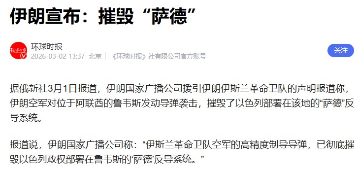 还比如部署在阿联酋鲁韦斯地区且服务于以色列反导防空网络的“萨德”系统雷达,也被彻底摧毁.....