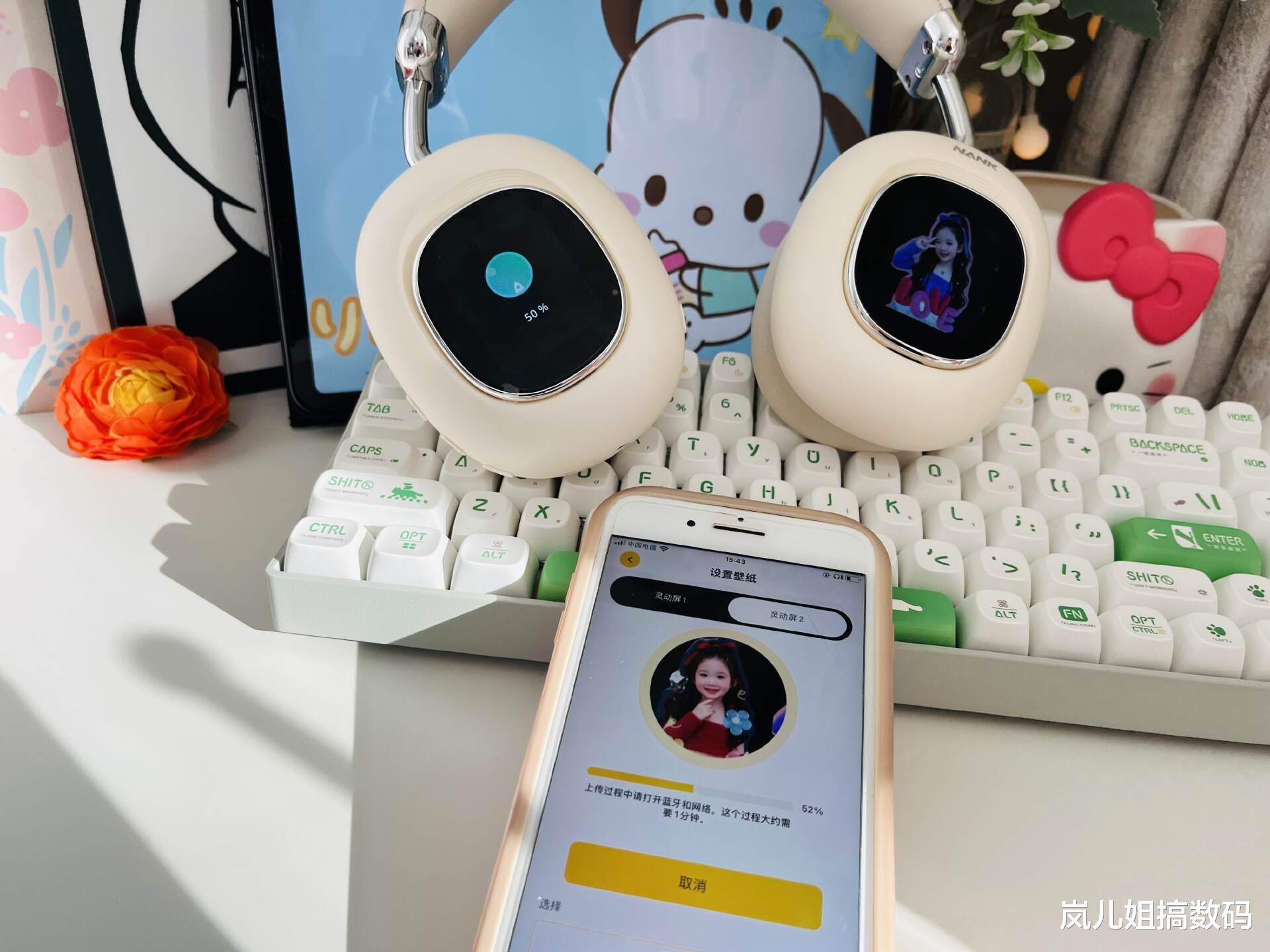 这个灵动屏不仅起到装饰效果,还能带来更多玩法体验,定制属于自己的个性专属耳机,屏幕可以自定义图片、动图、歌词、时间,还能显示降噪模式、电量,充当拍照遥控器、音乐app遥控器、视频app遥控器,不用掏手机就可以了解当前状态,颜值和实用性都有了。