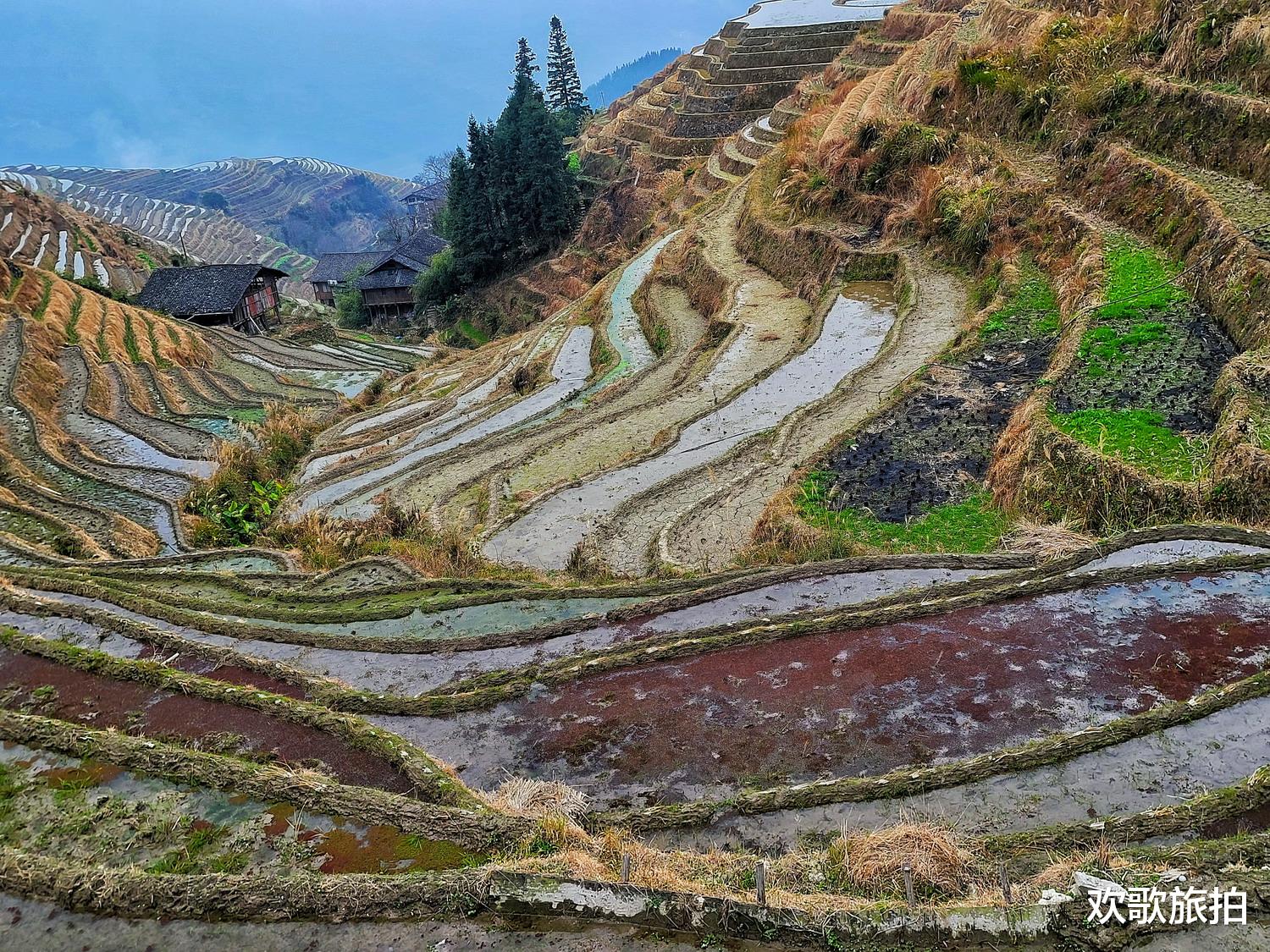 龙脊梯田平安寨映着流云与青峰 天光云影同一画框