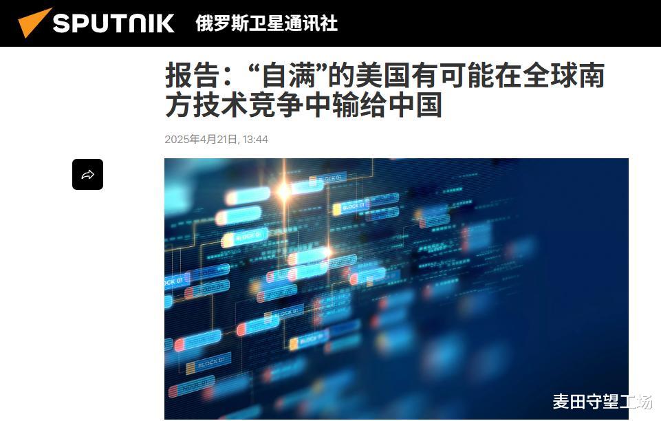 同时,在4月21日,美国华盛顿智库大西洋理事会发布报告称,美国智库警告美国当局,美国总统特朗普不要“自满”,要与全球南方(第三世界国家)合作,以巩固其在与中国不断升级的技术竞争中。美国智库警告称,“未来几十年,预计全世界发展中国家与中国的联系可能会加强。”,“美国不能低估发展中国家,在全球技术竞争中将发挥的作用”,“否则,将使中国赢得在全世界推进其地缘政治、经济和技术利益,让中国能够不受阻碍地塑造全球技术规范和标准,从而损害美国及其盟友的利益。”