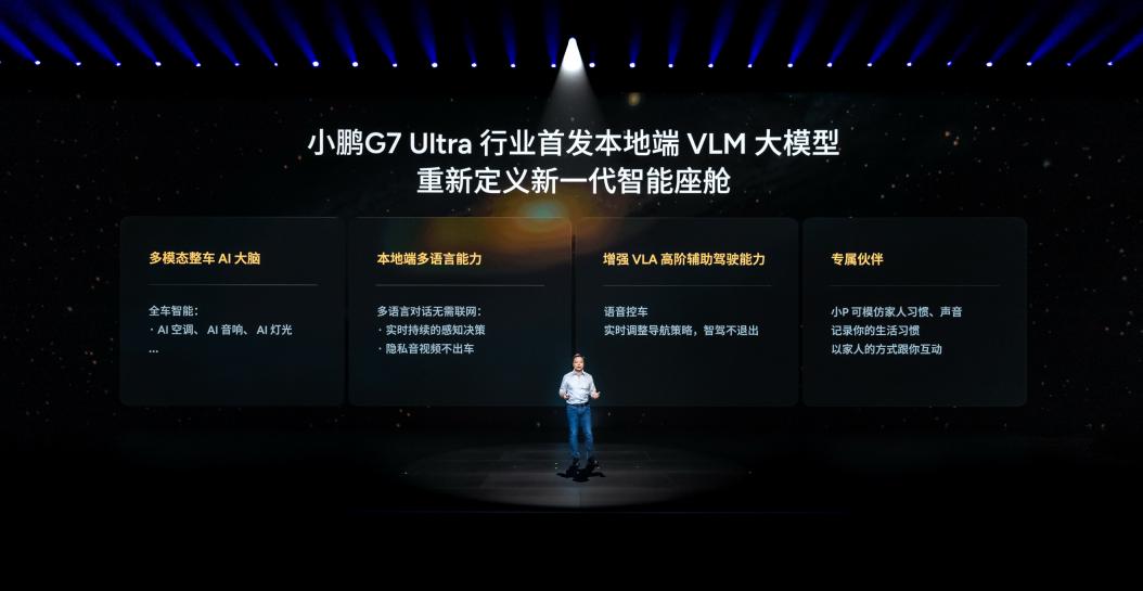 小鹏G7搭载行业首发的本地端VLM大模型更是颠覆了人车交互方式。VLM大模型是车辆理解世界的AI大脑,将成为下一代AI汽车的标配,重新定义下一代智能座舱全新交互体验。这个“智慧管家”能够理解、记忆用户需求并提供定制化专属服务,使智能座舱从传统的被动接收按键、屏幕、语音等指令,进化到无需指令即可主动服务。基于VLM模型的进化,在未来,汽车不只是交通工具,更是真正拥有思考与情感的伙伴。