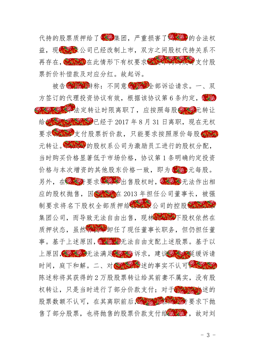 庭审中,王强提出三大抗辩:一是协议有效,张力离职应按原价****元转让股份;二是不认可张力主张的股票数量,且已支付的140万元应按税后金额扣减股数;三是本案已过诉讼时效。