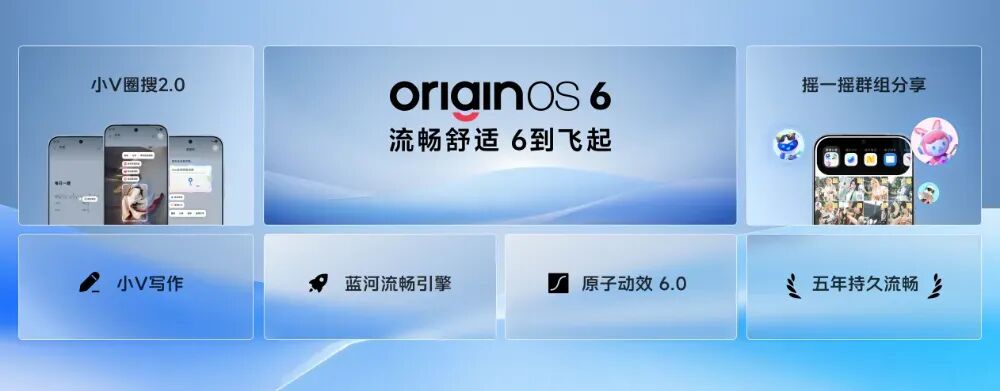 运行OriginOS 6操作系统,搭载自研蓝河流畅引擎。小V圈搜2.0支持屏幕内容智能识别与一键操作,小V写作提供多场景文本辅助创作,秒抢引擎优化抢票链路。