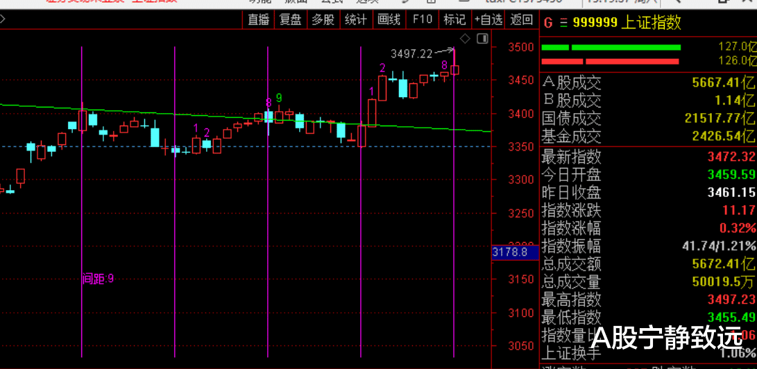 本周是7月初,壬午月最后一周,从农历周期和周期来看都在6月底7月初,级别较大,因此要防高点。本周各大指数周线序列9,日线周五序列9,也是共振。然后是5月14日以来9天等周期时间点,也落在周五。有了这个预期昨天冲高就不会去追高了,也及时提示不要乱买,多看少动,昨天下午尾盘再次回落,基本印证了这个高点。