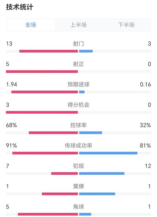 易边再战,阿森纳上来就一个失误,险些造成丢球。下半场双方球员的脾气也慢慢变大了啊!第74分钟哈弗茨还有梅开二度的机会,可以踢呲了,最终阿森纳主场1:0获胜,积分榜来到了第二位。技术统计可以看出伊普斯维奇没有一脚射正,实力还是很悬殊的!