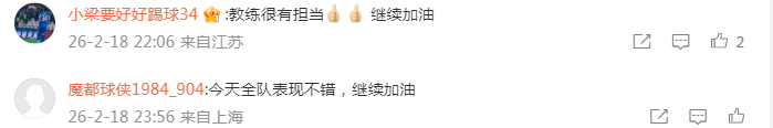 当然也有个别球迷不懂事说丧气话(下图),表示在今天这场比赛中没看到什么进步。对此,有懂球的球迷有理有力有节地跟他摆事实讲道理,认为今天的比赛是种试错而已,不过是用卢永涛出球交学费了。