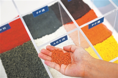 图为各种塑料再生颗粒。新华社记者 李紫恒摄