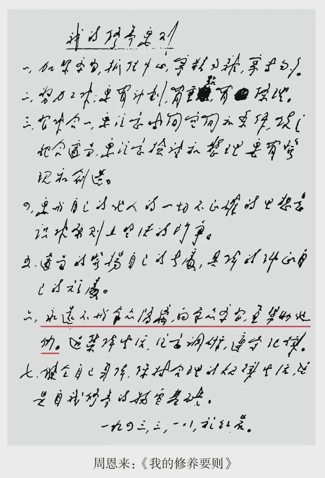 1943 年,四十五岁的七伯写下了《我的修养要则》,其中第六条写道:“ 永远不与群众隔离,向群众学习,并帮助他们。”