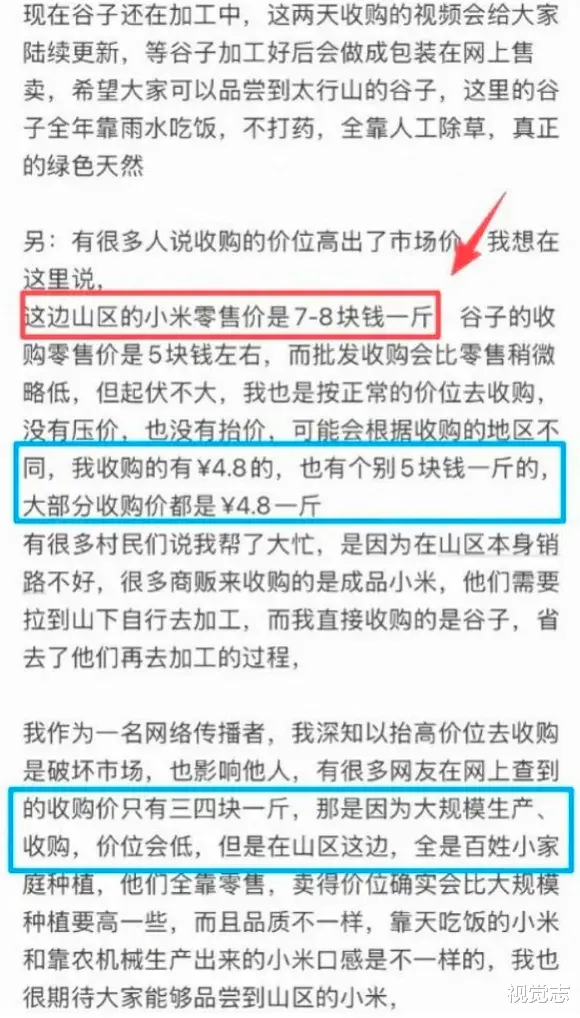 当她站到直播间,开始尝试带货——帮村里老人收谷子、加工成黄小米,价格按当地零售行情来算;她一边卖,一边解释收购价和成本,“这次没算加工费和运费,没有利润,我没赚一分钱”,外界却迅速替她写好了新标签:“变味了”“开始割韭菜了”“果然好人最后也要赚钱”。