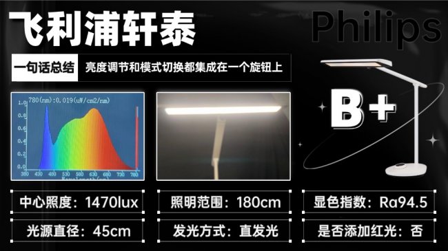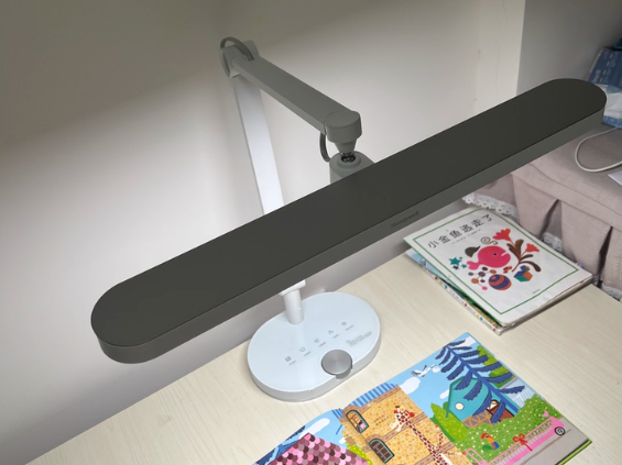 飞利浦轩泰走简洁实用路线,旋钮一体式设计把开关、亮度、模式集中在一起,老人小孩都能轻松操作。双转轴灯臂调节灵活,可适配不同学习高度与姿势,灯内楔形偏光透镜也让光线更柔和。不过它依旧是直发光结构,高亮下舒适度一般,长时间阅读容易疲劳,且灯头在长期使用后可能出现轻微下垂,结构耐久度属于同价位中等水平。