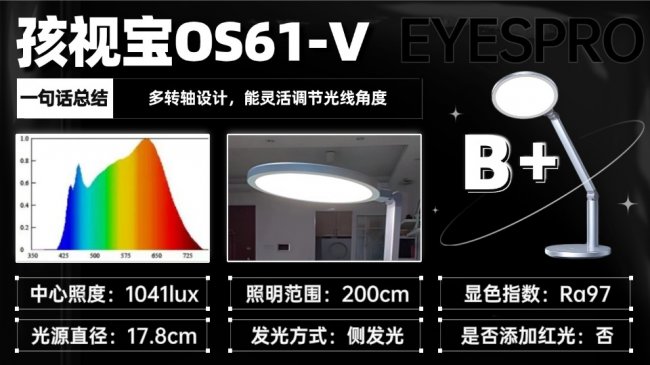 孩视宝OS61-V采用铝合金机身搭配多转轴结构,角度调节灵活,能适配多种桌面与坐姿。17.8cm发光面配合微导光技术,光线扩散更均匀,支持大范围色温调节,学习、睡前阅读都能适配。但自动调光灵敏度一般,需要频繁手动调整,长期使用后光衰相对明显,散热表现也比较普通,更适合对亮度要求不极端、以基础读写为主的人群。