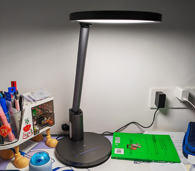 好视力H9外观简洁,灯体主要采用ABS与铝合金材质,环形发光面搭配微米级导光板,照明范围能覆盖一米左右桌面,显色表现满足日常读写。独立小夜灯是实用亮点,夜间起夜或弱光场景很方便。功能上支持触控调光,并具备番茄计时等模式。不过机身以塑料材质为主,灯头转轴阻尼偏弱,可能出现轻微下滑,防眩光表现属于基础水平,不适合长时间高强度用眼。