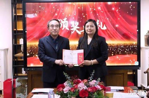 中国法事网办公室主任赵慧玲,因在采编培训与日常工作中展现的热情、细致与开拓精神荣获表彰。杨世民主席为她颁奖。