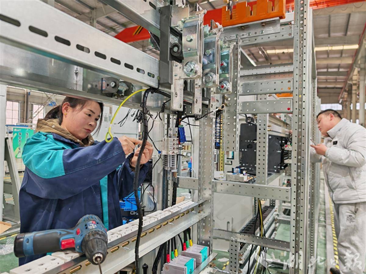 湖北雅格力特电气有限公司生产车间,工人们正在组装设备。(湖北日报通讯员柯栋 摄)