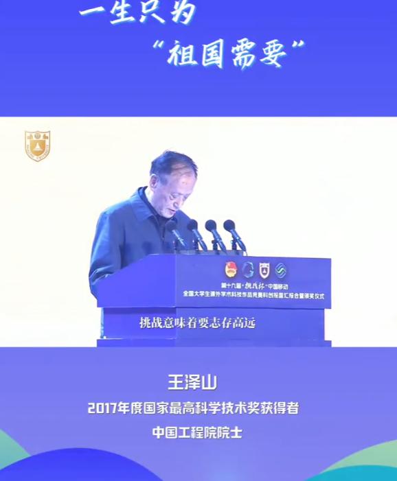 今年11月8日,在南京理工大学主办的“挑战杯”上,王泽山向年轻人寄语: