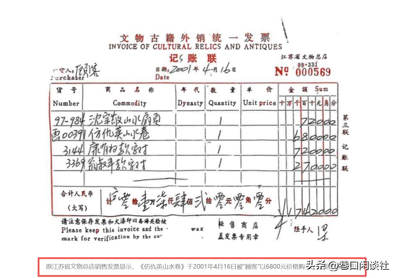 早在1997年,这幅画就被当作“处理品”,划拨给了文物商店;2001年,以6800元的价格,卖给了一位神秘“顾客”。