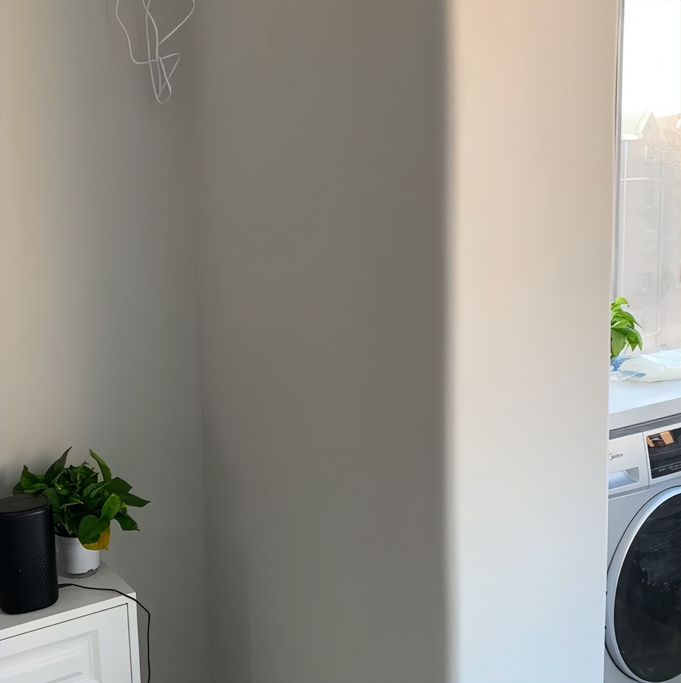 等到所有墙面都刷完漆,整个空间焕然一新。阳光透过落地窗洒进来,没有门套的干净利落,让房间显得格外通透。
