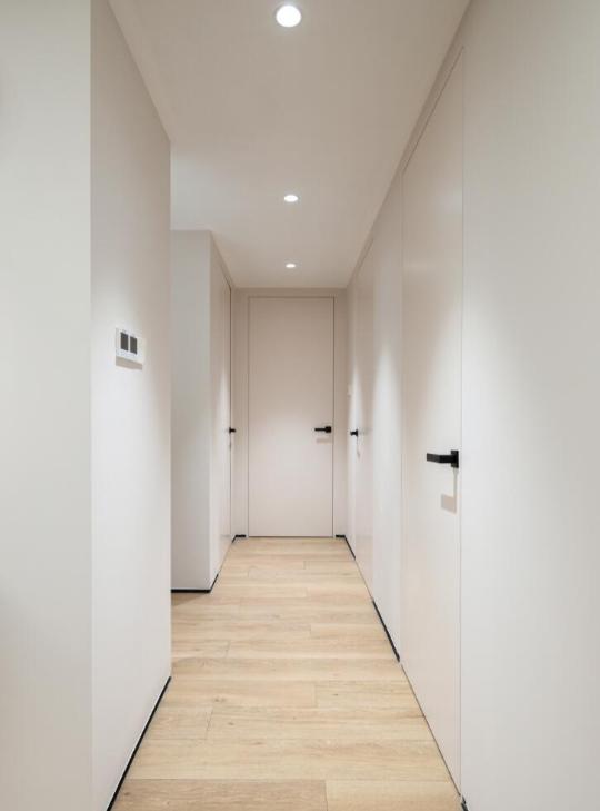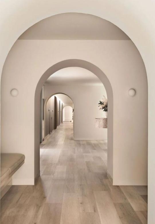 我站在空荡荡的房间里,仔细打量每个门洞,坚持要用乳胶漆直接处理,还特意跟工长商量要做成圆弧形状。