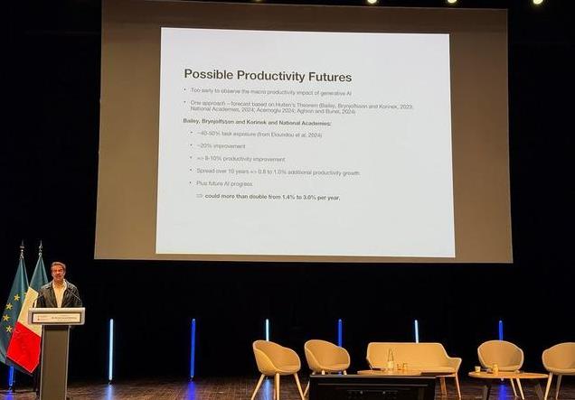 布林约尔松还谈到了这样一个悖论:尽管微观层面有所改善,但宏观经济生产力指标却出现停滞迹象。他引用了研究结果,指出总体生产力增长已经放缓——从 2005 年的 2.6% 降至今天的 1.2% 左右,一些经济体甚至出现负增长。这种差异暗示着标准经济指标无法捕捉到的隐藏价值。例如,虽然免费数字工具(如 YouTube、Gmail 甚至 AI 应用程序)的激增创造了大量消费者剩余,但这些好处往往被排除在 GDP 计算之外。这一观察结果提出了一个重要问题:在数字创新从根本上改变我们经济互动结构的时代,我们如何衡量生产力。