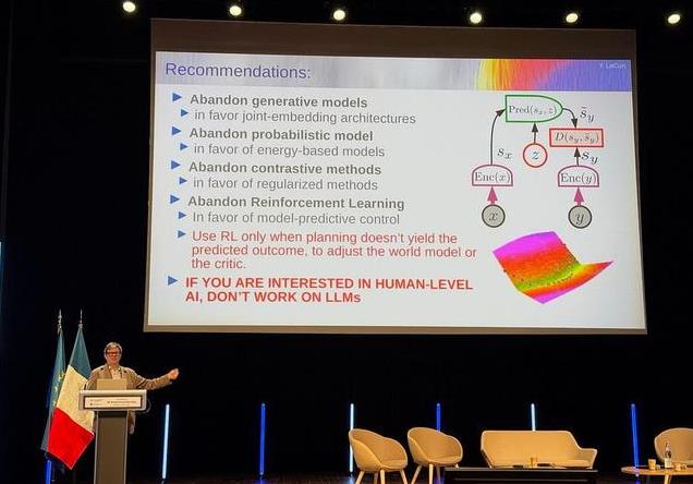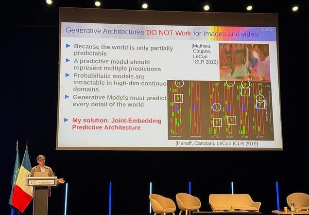 在整个演讲中,LeCun 将技术细节与哲学思考交织在一起。他挑战社区重新思考智能的衡量标准。他没有赞扬法学硕士在考试中取得优异成绩或生成连贯文本的能力,而是敦促我们关注系统如何从感官数据中开发世界模型——灵活、自适应且能够进行零样本学习的模型。他充满激情地呼吁人工智能社区摆脱对基于文本的预测的狭隘关注,采用更全面、感官整合的方法。