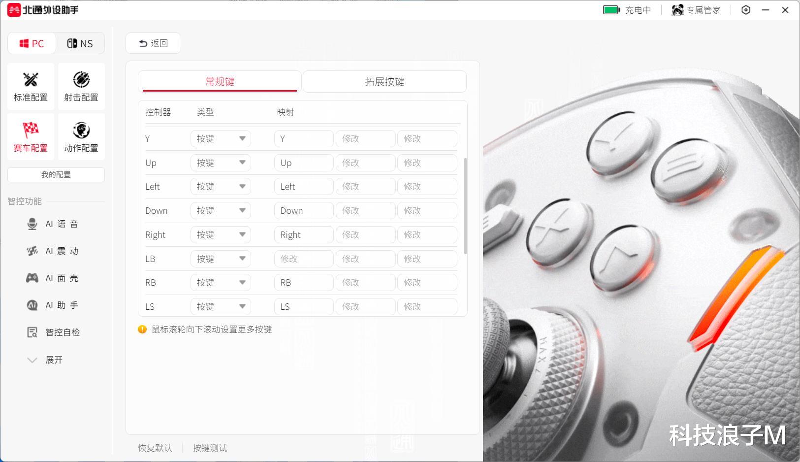 最让人惊喜的还是它的智控黑科技,作为行业内唯一集齐AI语音、AI震动、AI记忆面壳的手柄,它直接把智能玩出了花。AI语音2.0能实现语音调整参,说出唤醒词“你好,通通”或 长按AI键3s即可唤醒AI语音助手,在游戏中也能一句话调整多个参数,无需退出,非常的人性化。
