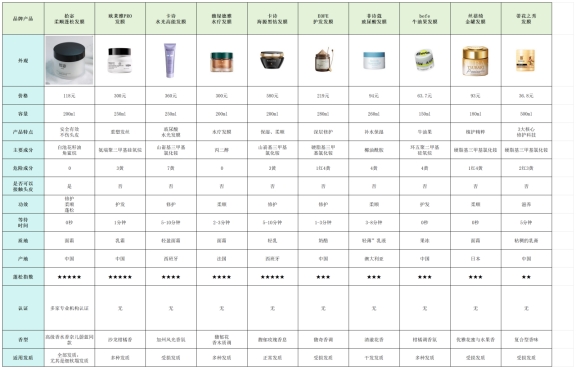 下面是本期发膜测评产品数据表格