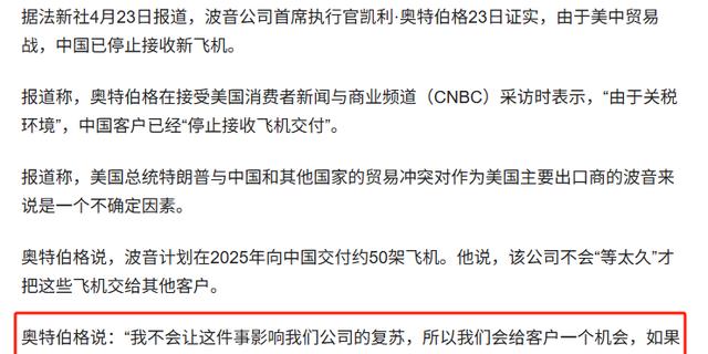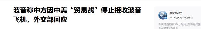 退货被曝光后,23日当天,波音CEO出来回应,声称中国方面是因为关税问题退货的。