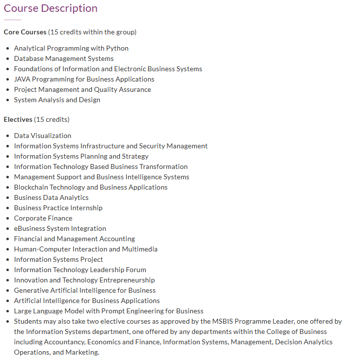 MIS专业面向非IT背景的申请者,重点培养他们评估前沿IT的能力、协调IT驱动的业务项目以及管理业务信息系统的运营,以满足组织的业务需求。随着人工智能的日益普及,这类信息系统越来越具备更高的智能。