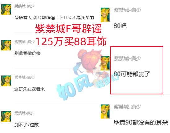 紫禁城F哥亲自发声辟谣,澄清自己没有花125万买这个耳饰,不要用他来炒作价格,这个耳饰在他看来可能80万的价格都到不了。