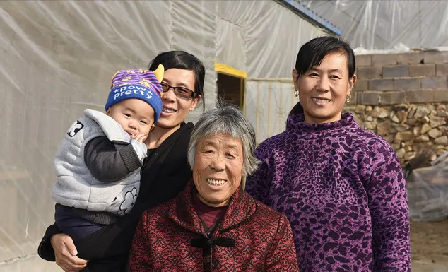 迟玉洁(抱着儿子)、刘兆兰、迟玉兰合影
