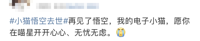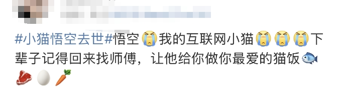 据悉,小猫“悟空”从收养到车祸去世还不到半年。