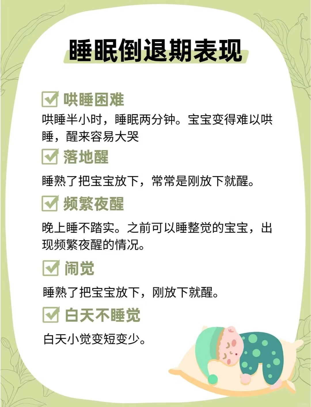 没错,这就是让无数新手爸妈闻风丧胆的“睡眠倒退期”,它通常会在宝宝三四个月大的时候,悄无声息地降临。你可能会发现,之前晚上只醒一两次的宝宝,突然开始每小时都哼哼唧唧地找你;明明困得直揉眼睛,可一放下就炸毛大哭,非得抱着才肯眯一会儿;就连以前得心应手的奶睡、抱睡,现在统统失灵了,小家伙在你怀里扭来扭去,小脑袋摇得像拨浪鼓,怎么哄都不满意。一夜之间,仿佛那个软糯的天使宝宝被掉包了,留下的这个“睡渣”让你彻底崩溃,看着窗外的黑夜,再瞅瞅怀里精神百倍的小家伙,除了怀疑人生,大概也只能跟着默默流泪了。