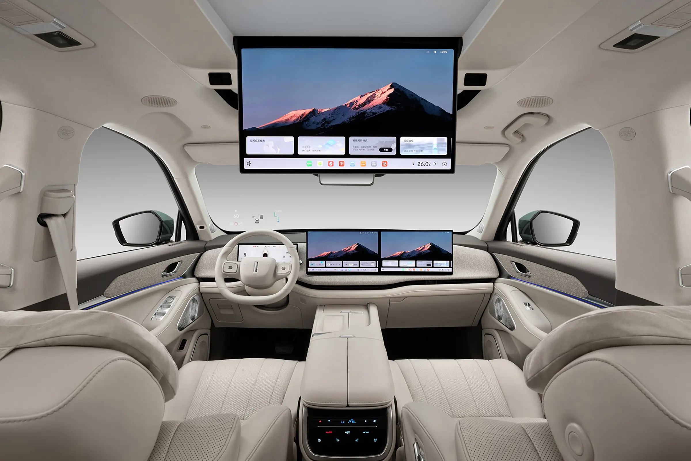 全新蓝山搭载29英寸的Coffee SR-HUD领航抬头显示技术、流媒体后视镜等,提升了车辆行驶的安全感和科技感。中控屏幕采用15.6英寸的2.5K双联屏设计,显示效果十分细腻清晰。车机采用高通骁龙8295芯片,系统反应流畅。Ultra版还标配17.3英寸3K分辨率后排娱乐屏,并且能实现与前排双屏联动。车上配备50W手机无线充电面板,方便快捷为手机充电。全新蓝山标配23扬声器,支持7.1.4杜比全景声,能够为乘客带来沉浸式的视听享受。