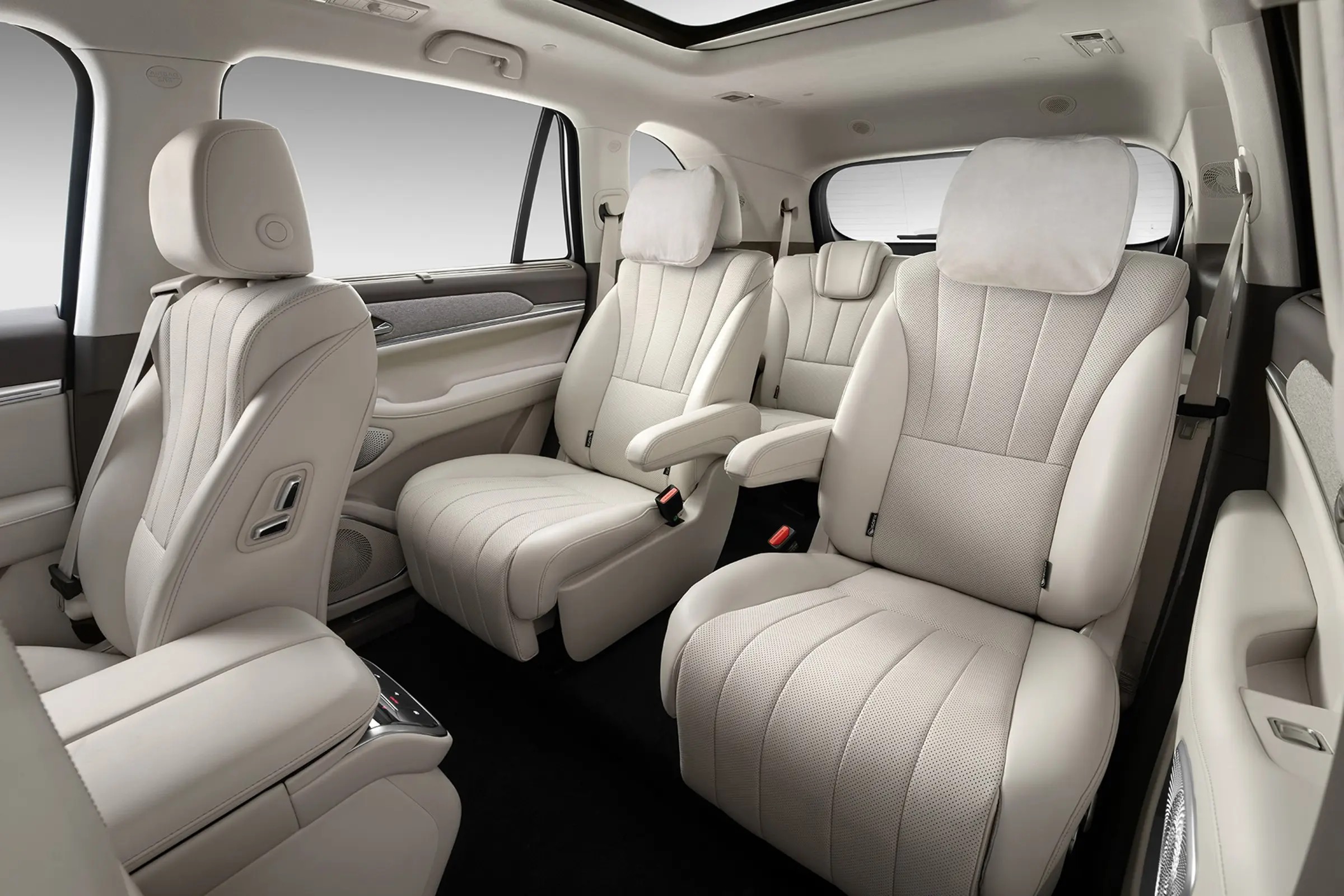 全新蓝山的内饰方面依然延续豪华的传统,座椅使用NAPPA真皮材质,触感柔软舒适。全系标配副驾零重力座椅、后排小桌板、侧窗遮阳帘、座椅通风、加热、按摩、腿托舒享功能,极大地提升了乘坐舒适性。前排和第二排座椅支持电动调节,第二排独立座椅支持三档可调座椅加热、通风功能。全家长途出行无惧疲劳。