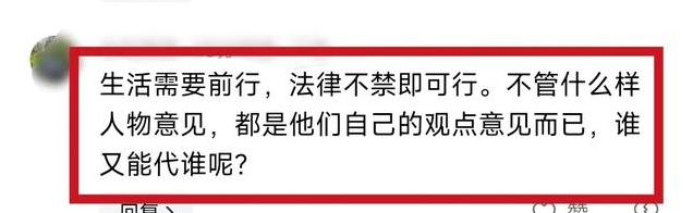 “生活需要前行,法律不禁即可行,不管什么样的人物意见,都是他们自己的观点意见而已,谁又能代表谁呢?”