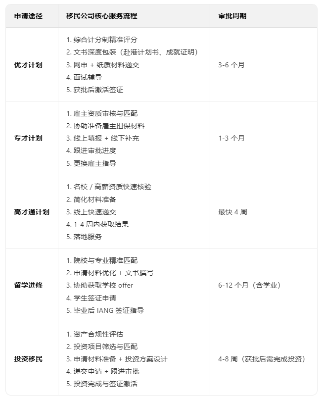 无论选择哪种香港身份申请途径(优才、专才、高才、留学、投资移民),移民公司的服务流程通常包含以下核心步骤: