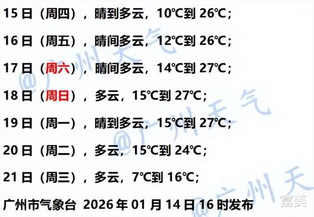 最近是否感觉天气在回暖?你对目前的气温还适应吗?值得注意的是,下周中期广州天气将出现较明显转折,届时最高气温会骤降至十几度。