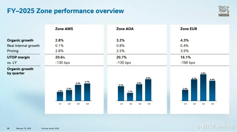 雀巢今天指出,在2025年,亚洲、大洋洲和非洲大区(AOA)的有机增长率为3.2%,除大中华区外,各市场均实现广泛增长。在大中华区,受整体通货紧缩环境的影响,公司也在调整渠道库存、重塑运营模式,销售额仍有所下降。