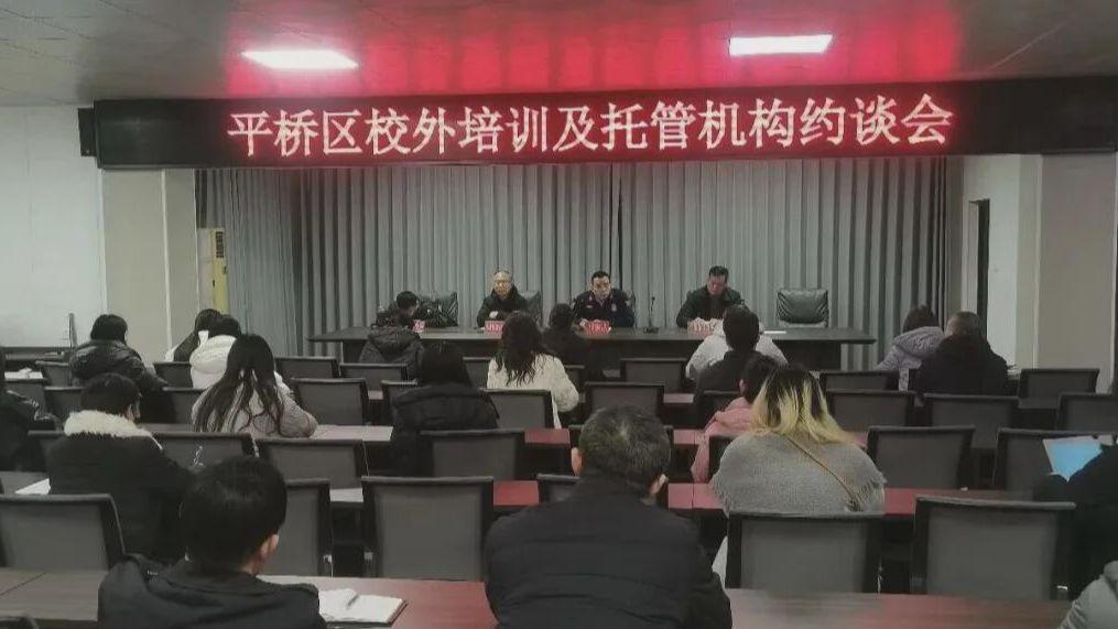 2月6日,信阳市平桥区教体局、平桥区消防队、平桥街道办事处及平西街道办事处等部门联合召开校外教育培训机构及托管机构专项约谈会,重点围绕消防安全、收费透明化、违规学科培训及办学规范四大核心问题展开部署,旨在进一步净化校外教育生态,保障学生与家长权益。