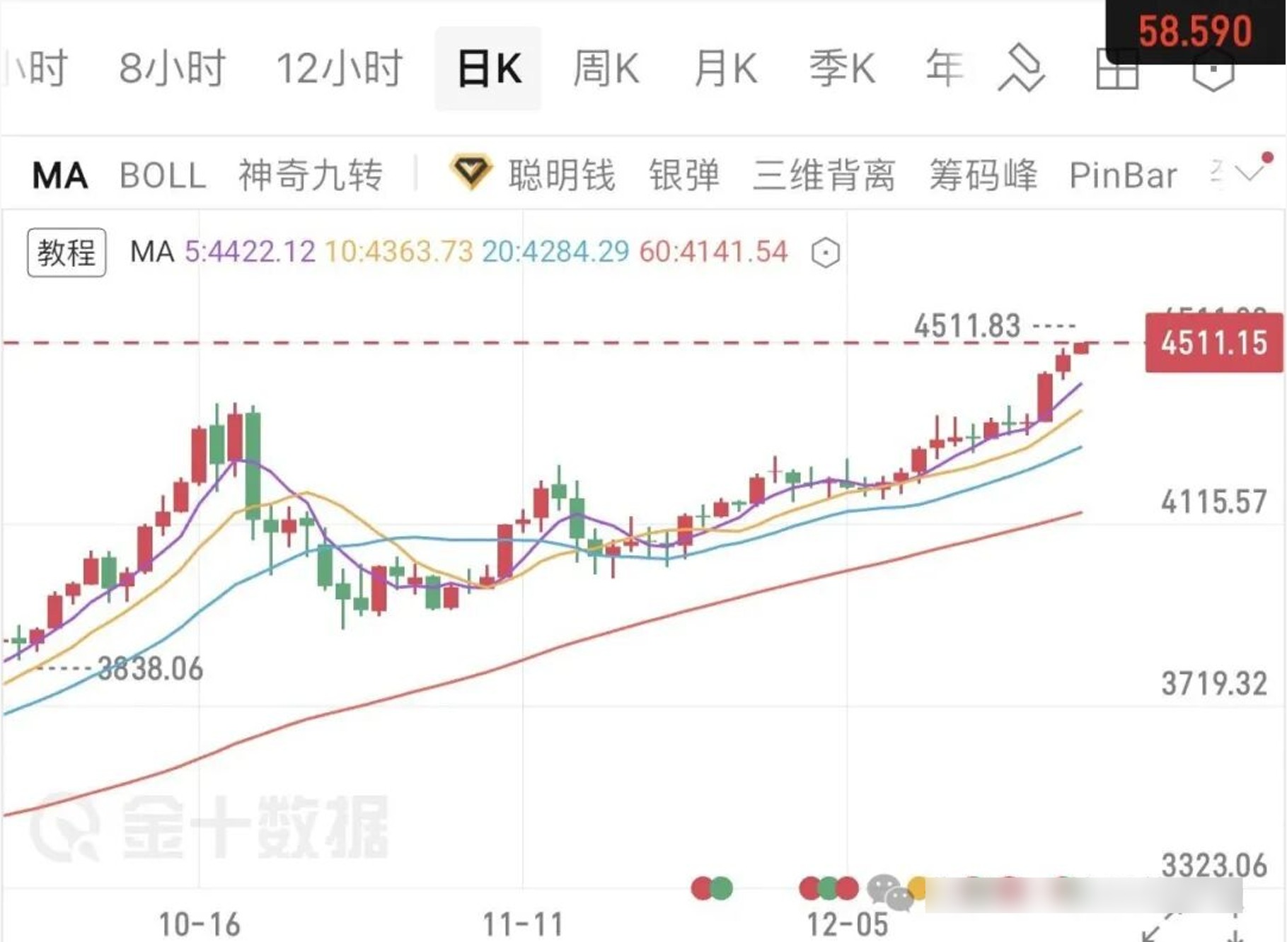白天支撑短线就是早间开盘价4485区域,多空强弱分界线;操作上,杠杆产品继续低多,出现明显空头信号或者趋势转向前尽量不空。非杠杆产品积存金等错过了这轮多头;尽量不追,追高风险大,追也只能短线系好安全带。实物金,年为单位持有,不折腾!