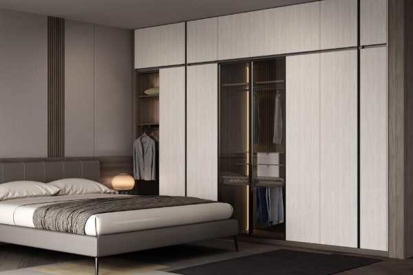 3、衣帽室,衣橱是为了储藏衣物而设计的,一般别超过60厘米,这个深可以储藏各类衣物。若是柜子太大,想要将里面的衣物拿出来就很困难了,尤其是两排衣物,想要将一排衣物拿出来就更困难了。若空间过小,不能达到55 cm,还可以对卧室进行改装,拆掉2个卧室的中央墙,把两边的柜子都做入墙,把两边的柜子都做成正常的高度。如果墙体是受力墙体,不能拆卸时,也可以使用横向的、可伸长的、可伸缩的、类似于下面的横梁。