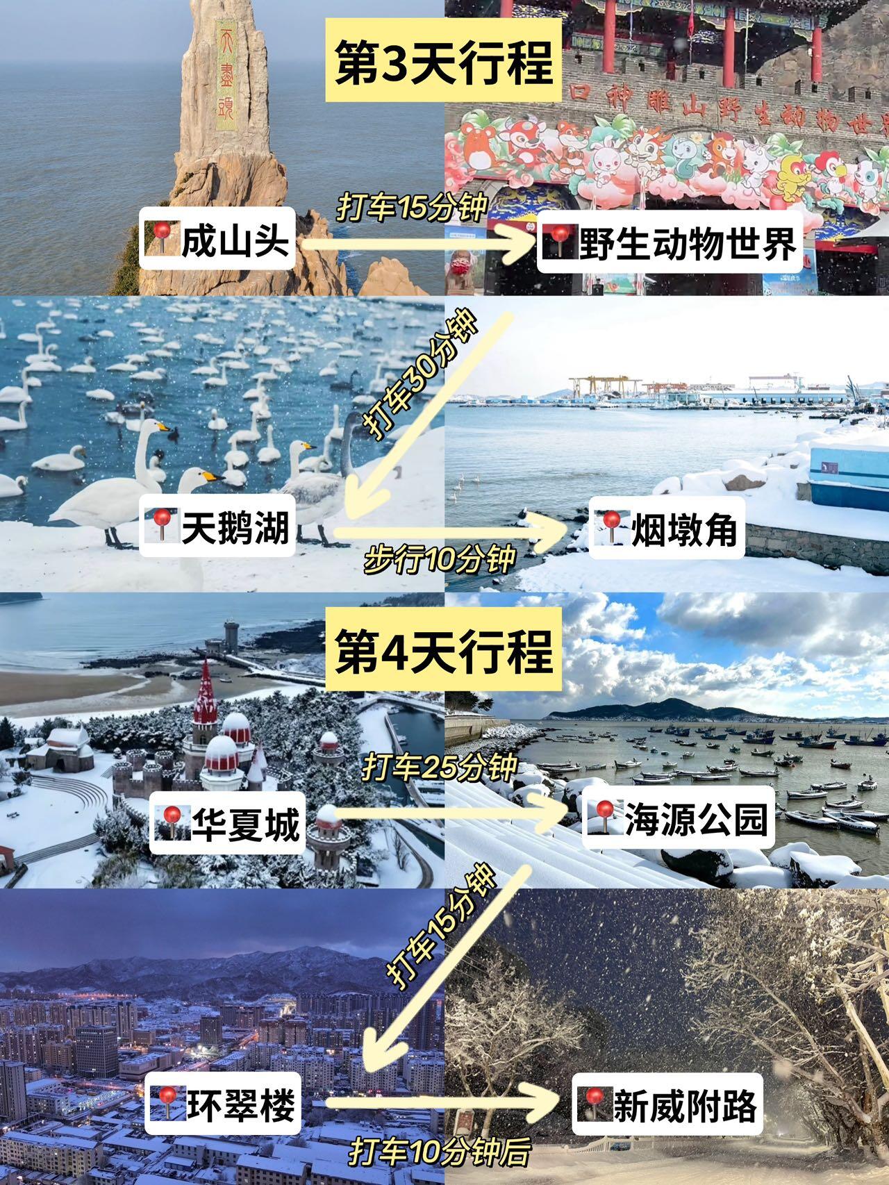 成山头真的必须安排,这次直接起了个大早去看了日出,看完又接着去野生动物世界逛了逛,还能买点蔬菜啥的喂喂动物,后面又到了天鹅湖、烟墩角看天鹅,真的超治愈!!!!🦢