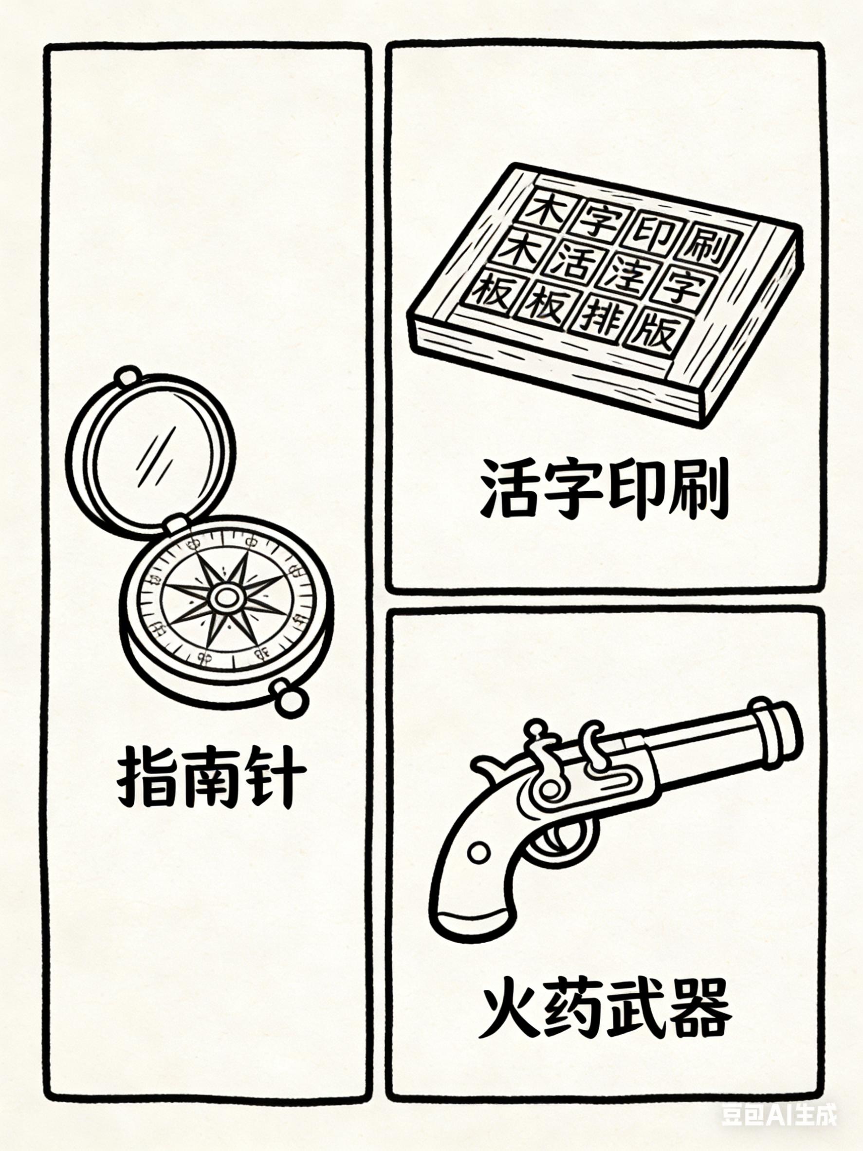影响:三大发明西传,推动欧洲文艺复兴与地理大发现,改写人类文明进程。